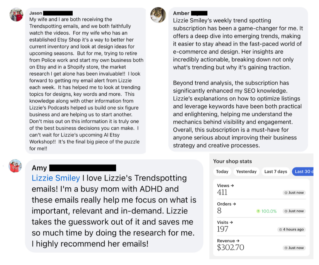 If you're serious about making Etsy work for you-- I HIGHLY recommend you start with my Scaling Society. It's the best bang for your buck-- and will give you the exact roadmap, training, and support you need to reach your goals.