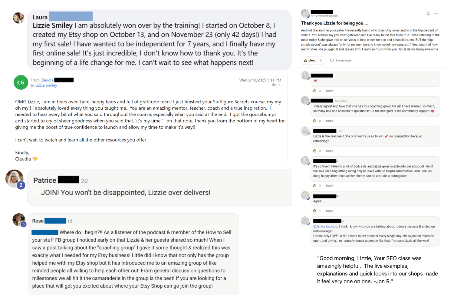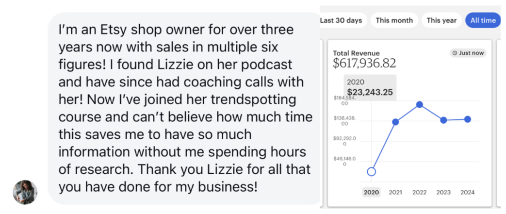 A membership designed to take an Etsy seller by the hand and provide a clear roadmap for growth, training to help you master your product and the Etsy platform, and support to give you the confidence that you're on the right track.